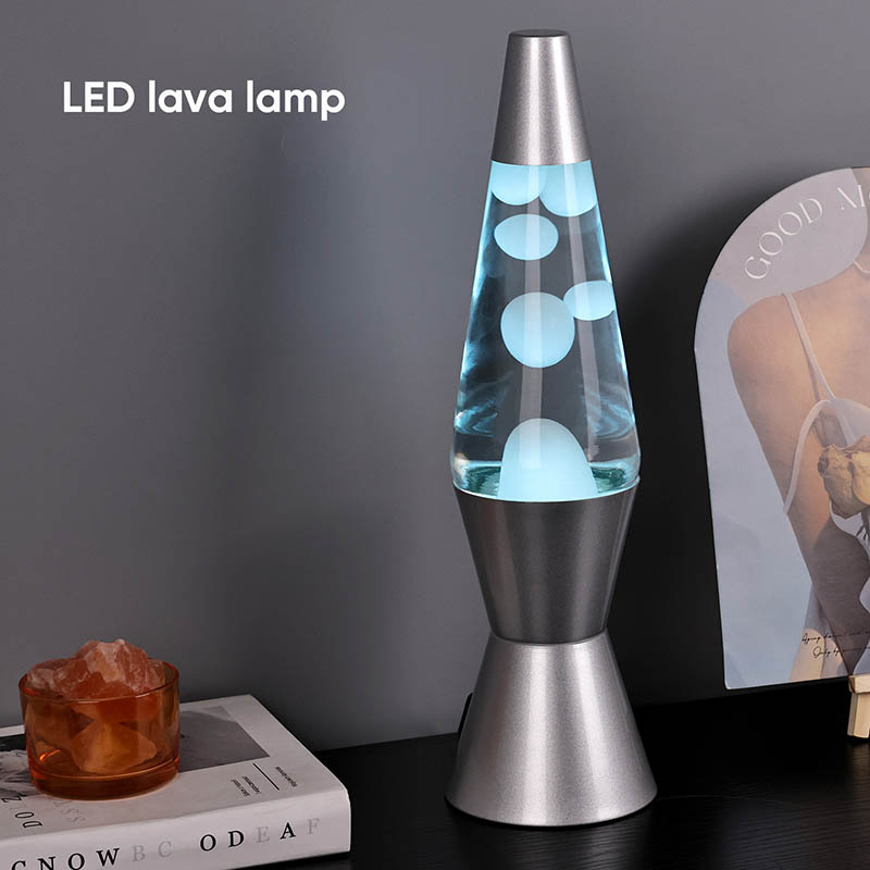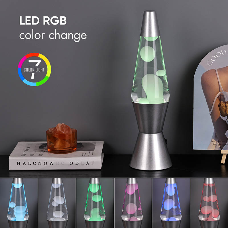 โคมไฟลาวา RGB LED ขนาด 15 นิ้วมีเปลี่ยนสีได้ 7 สีที่ด้านล่าง สีเป็นสีขาวมีลาวา