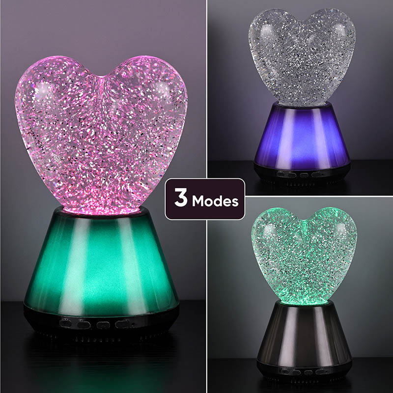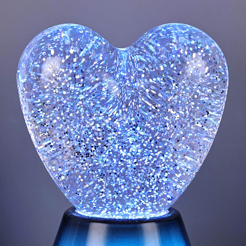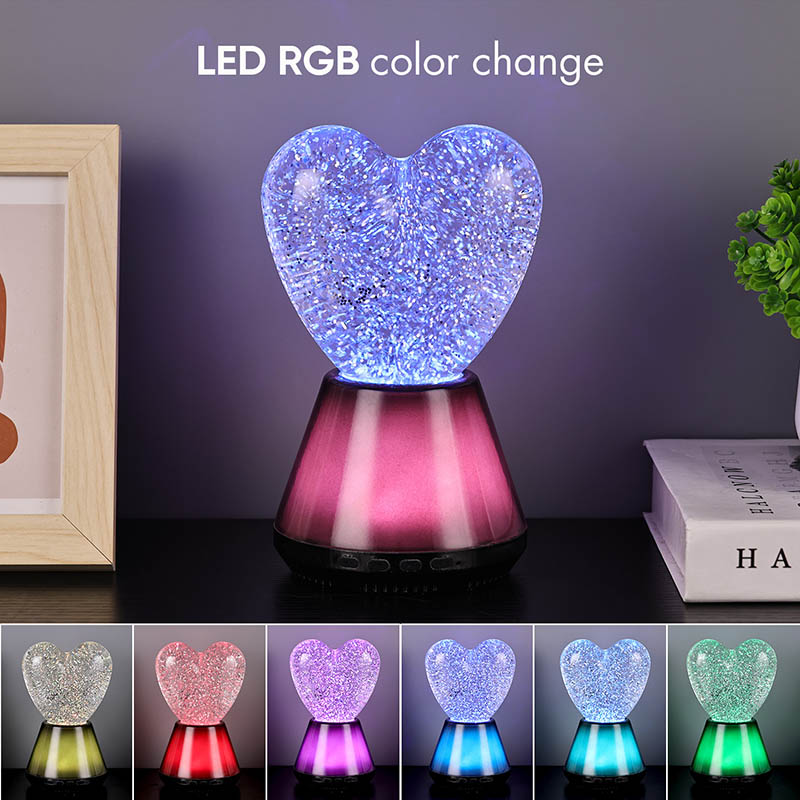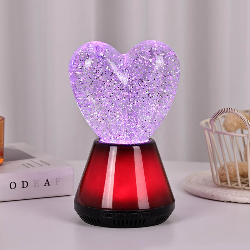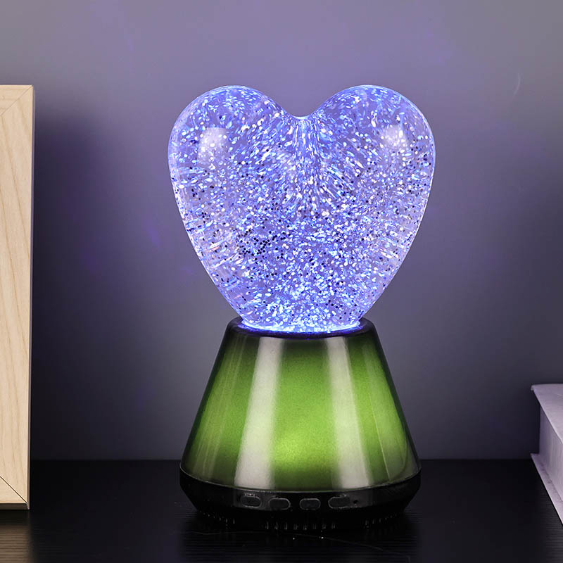 การตกแต่งภายในของระบบควบคุมด้วยบลูทูธทำให้ไฟกลางคืนรูปหัวใจแวววาวเต็มไปด้วยของเหลวลึกลับ ซึ่งมีเลื่อมเป็นประกายจำนวนนับไม่ถ้วนลอยอยู่ เมื่อเปิดหลอดไฟ ของเหลวจะค่อยๆ ไหลภายในลูกบอลแก้วรูปหัวใจ ทำให้เกิดเอฟเฟกต์เหมือนฝัน เลื่อมเหล่านี้ดูเหมือนดวงดาวที่กระจัดกระจาย ค่อยๆ ลอยอยู่ในของเหลว ทำให้ผู้คนรู้สึกเหมือนอยู่ในท้องฟ้าที่เต็มไปด้วยดวงดาว ไม่ว่าจะเป็นกลางวันหรือกลางคืน เฉดสีรูปหัวใจสามารถสร้างความประหลาดใจและความสุขให้กับเด็กๆ ได้ ช่วยให้พวกเขาปลดปล่อยจินตนาการท่ามกลางแสงไฟชวนฝัน
