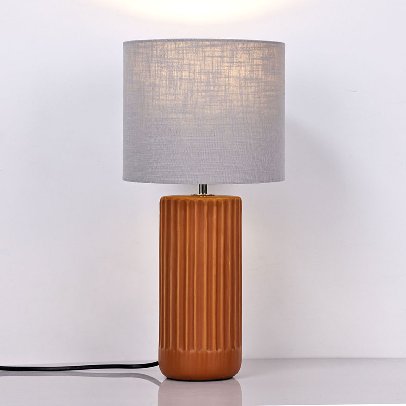 โคมไฟตั้งโต๊ะ LED เซรามิกพร้อมโป๊ะผ้า