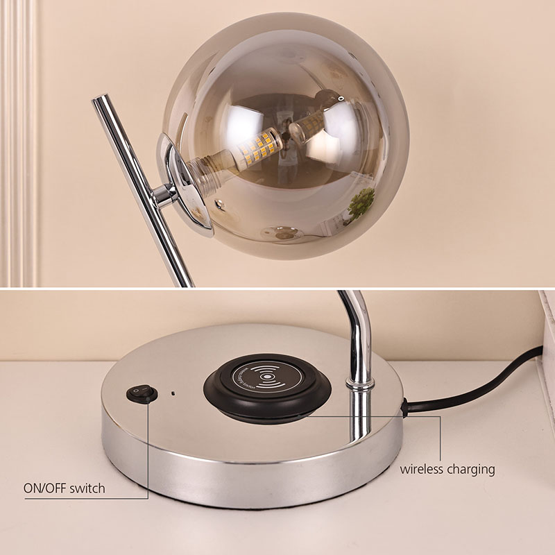 พร้อมฟังก์ชั่นการชาร์จไร้สาย 10W สวิตช์เปิด/ปิดบนฐานโคมไฟตั้งโต๊ะลูกบอลแก้วสีเข้มพร้อมที่ชาร์จไร้สายซึ่งมีฝาครอบแก้ว ไฟ LED โทนสีอบอุ่น และฐานชาร์จโทรศัพท์มือถือไร้สายแบบโลหะ ได้รับการออกแบบมาเพื่อจุดประสงค์นี้ ผสมผสานเทคโนโลยีสมัยใหม่เข้ากับการออกแบบที่อบอุ่นได้อย่างลงตัว มอบความสะดวกสบายและประสบการณ์ความสะดวกสบายอย่างที่ไม่เคยมีมาก่อนให้กับคุณ