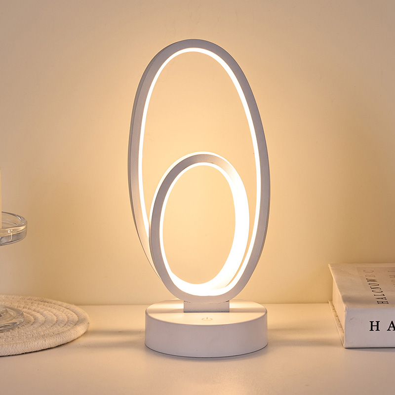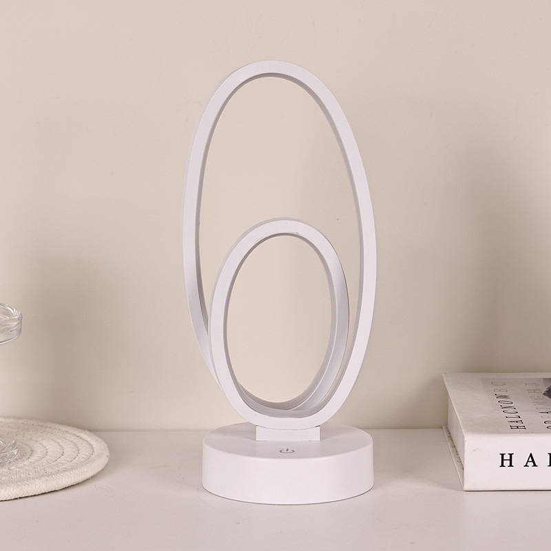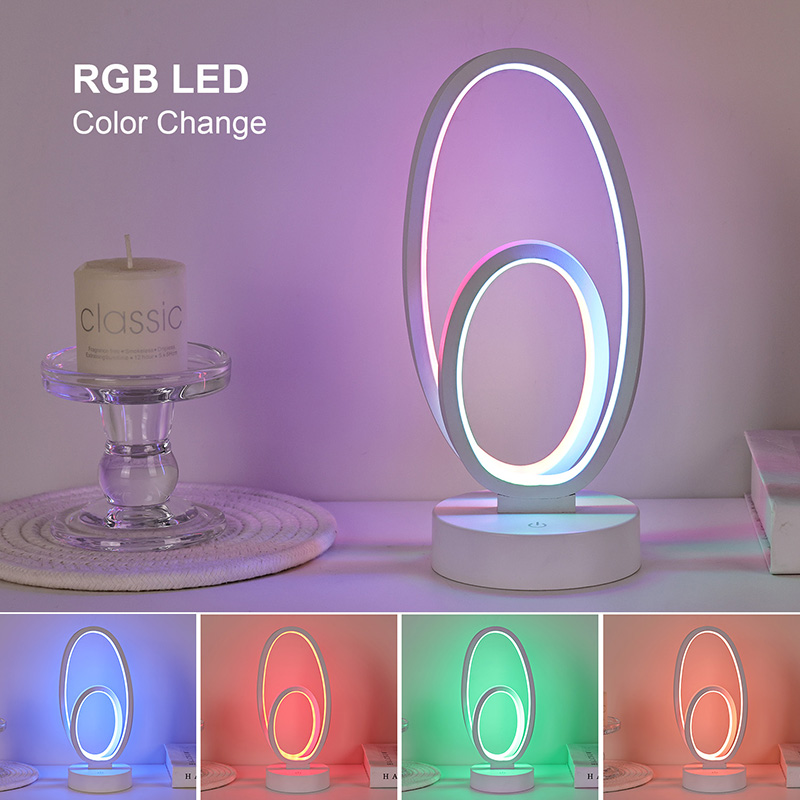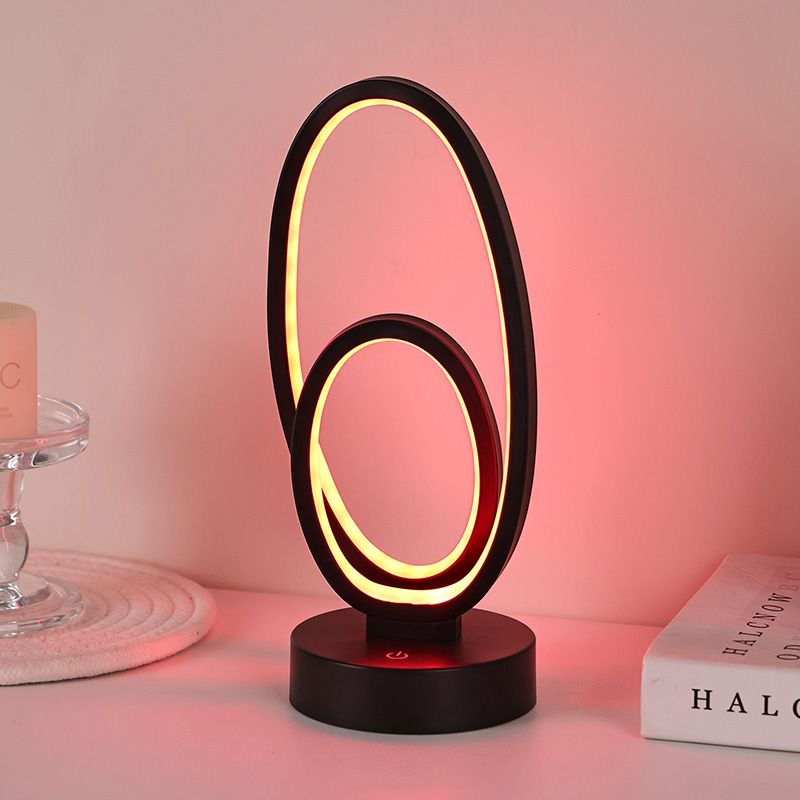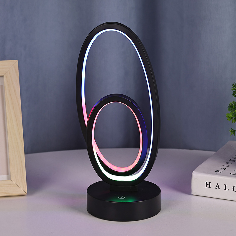 44*33*ส23.5ซมโคมไฟตั้งโต๊ะ RGB แบบวงแหวนคู่แบบวงแหวนมีดีไซน์แบบวงแหวนคู่ พร้อมรูปทรงหรูหราที่ล้อมรอบด้วยเส้นสไตล์มินิมอล การผสมผสานระหว่างโลหะและพลาสติกคุณภาพสูง ทำให้มีพื้นผิวที่โดดเด่นและสัมผัสที่ละเอียดอ่อน นอกเหนือจากการเป็นเครื่องมือให้แสงสว่างแล้ว