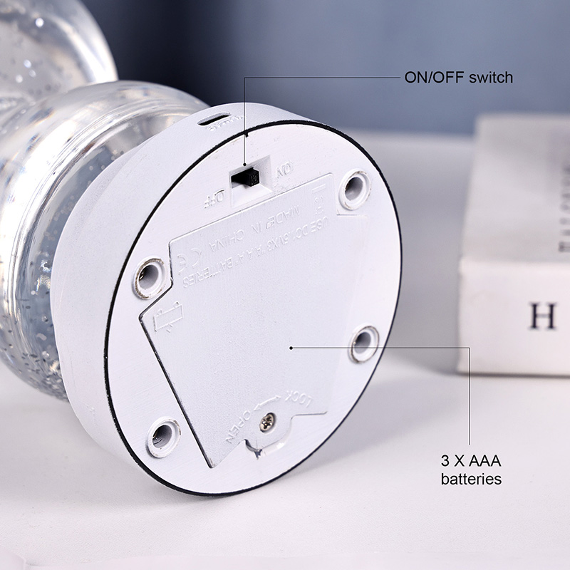 แสงกลางคืนแมงกะพรุนอันน่าหลงใหลไม่เพียงแต่สวยงามเท่านั้น แต่ยังมีประโยชน์ใช้สอยสูงอีกด้วย ใช้พลังงานจากแบตเตอรี่ที่อยู่ที่ฐาน ทำให้พกพาสะดวกและสะดวก คุณสามารถวางไว้บนโต๊ะข้างเตียง โต๊ะ หรือชั้นวางของได้โดยไม่ต้องกังวลเรื่องสายไฟหรือปลั๊กไฟ ขนาดกะทัดรัดทำให้เหมาะสำหรับพื้นที่ขนาดเล็ก ในขณะที่โครงสร้างที่ทนทานช่วยให้ใช้งานได้ยาวนาน