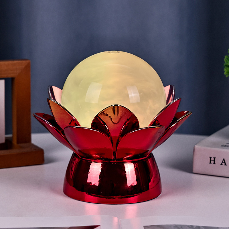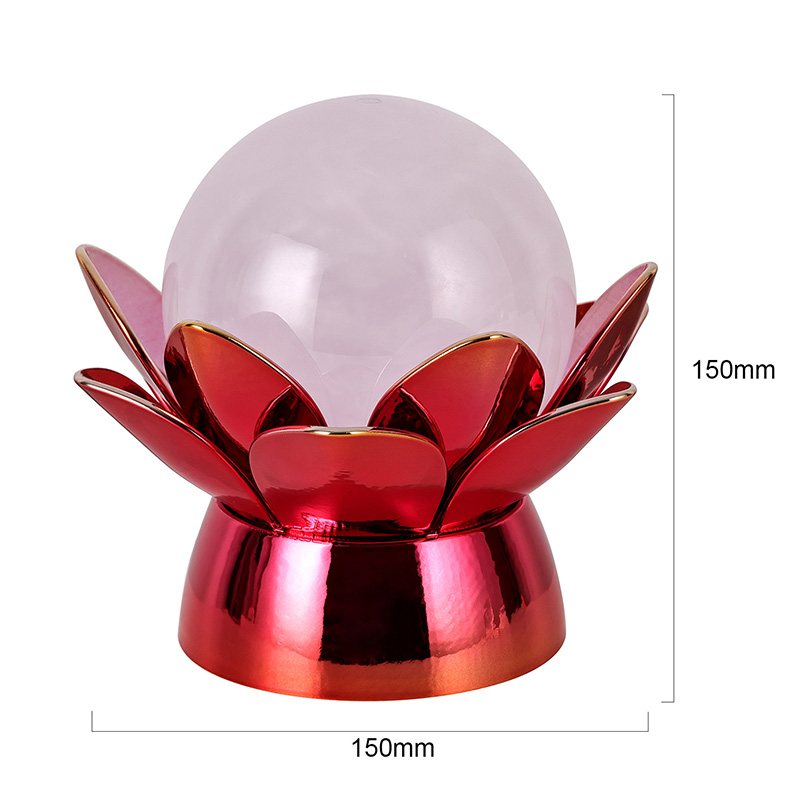 ผลิตจากวัสดุคุณภาพสูง ฐานทำจากโลหะขัดเงาพร้อมพื้นผิวสีแดงทองที่โดดเด่น ซึ่งสะท้อนแสงได้อย่างสวยงาม เพิ่มความลึกและสีสันให้กับรูปลักษณ์ การออกแบบดอกบัวไม่เพียงแต่ทำหน้าที่เป็นจุดเน้นด้านสุนทรียภาพเท่านั้น แต่ยังมีความหมายเชิงสัญลักษณ์ที่มีรากฐานมาจากประเพณีตะวันออก ซึ่งแสดงถึงการตรัสรู้ ความยืดหยุ่น และความกลมกลืน พื้นผิวสะท้อนแสงช่วยเพิ่มผลกระทบต่อการมองเห็น ทำให้หลอดไฟส่องสว่างแม้ในสภาพแวดล้อมที่มีแสงน้อย