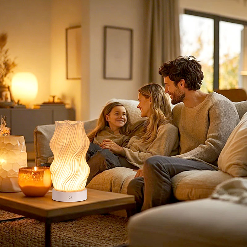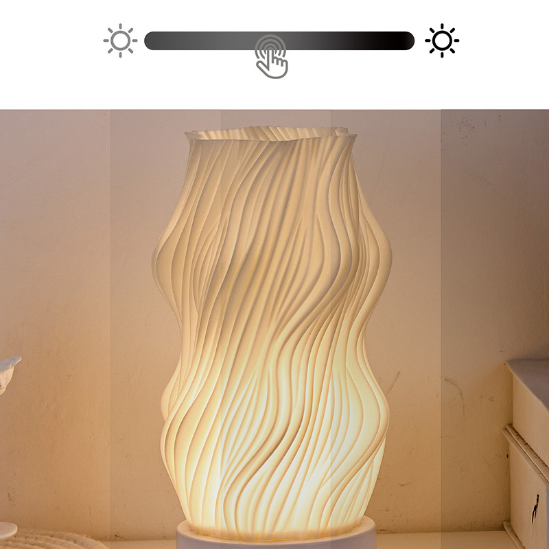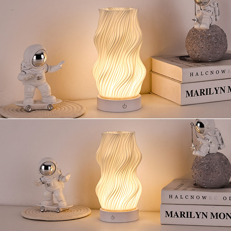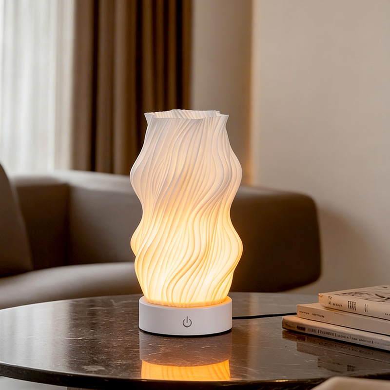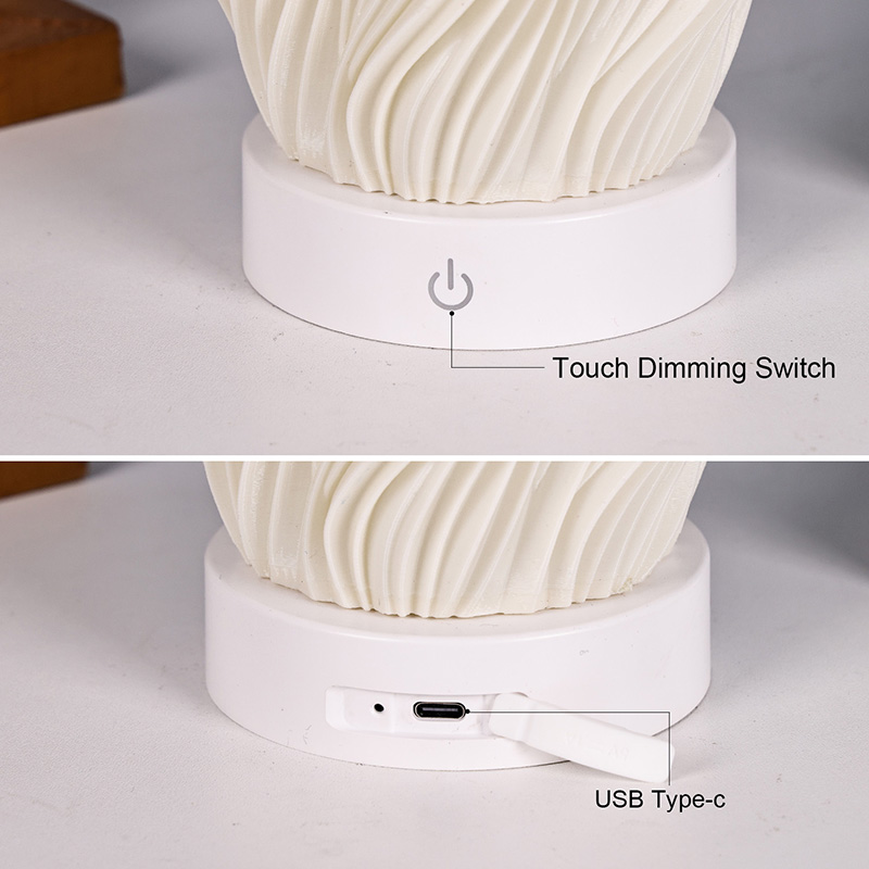 ตัวโคมไฟตั้งโต๊ะ Flame Night Light ผลิตจากพลาสติกระดับพรีเมี่ยม (กะทัดรัด) และน้ำหนักเบา ไม่เพียงแต่ให้ความรู้สึกอบอุ่นเมื่อสัมผัสเท่านั้น แต่ยังทำความสะอาดและเคลื่อนย้ายได้ง่ายอีกด้วย การออกแบบพื้นผิวหยักแบบมินิมอลผสมผสานความงามทางศิลปะเข้ากับการใช้งานจริง ผสมผสานเข้ากับสไตล์การตกแต่งบ้านได้อย่างง่ายดาย เป็นชิ้นส่วนเน้นเสียงที่สมบูรณ์แบบและประหยัดพื้นที่ซึ่งช่วยเพิ่มความหรูหราให้กับห้องของคุณ