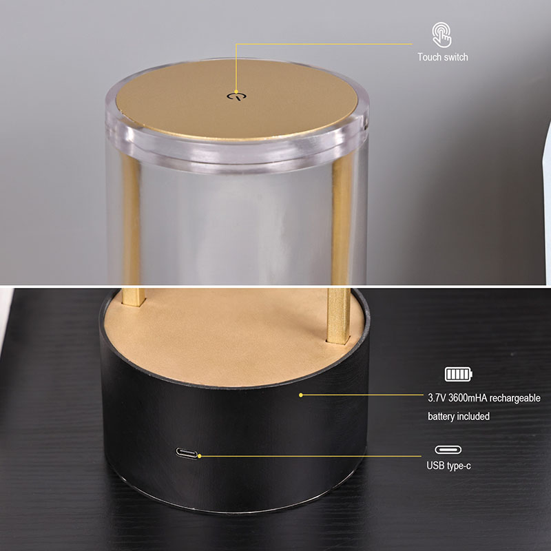ด้านบนของโคมไฟตั้งโต๊ะขนาดเล็กสไตล์โคมไฟเป็นสวิตช์ไฟแบบสัมผัส โดยมีหัวชาร์จแบบชาร์จ Type-c ที่ด้านล่าง ด้านบนประกอบด้วยฝาครอบอะคริลิคใส และด้านล่างเป็นฐานโลหะ โครงสร้างทรงกลมโดยรวมช่วยให้สามารถเคลื่อนย้ายแสงสว่างได้