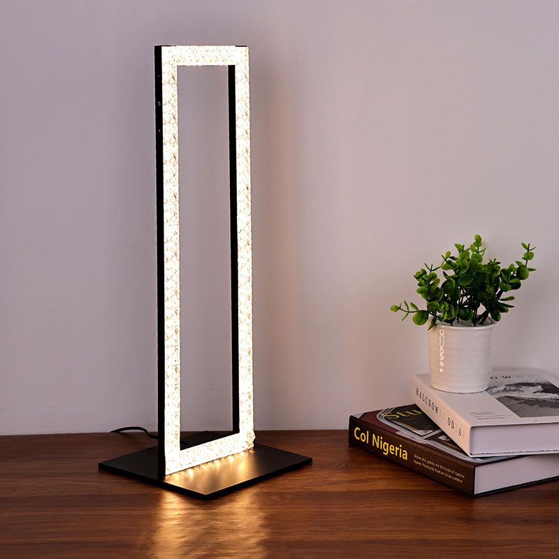 โคมไฟตั้งโต๊ะ LED พร้อมเฉดสีคริสตัลสี่เหลี่ยมผืนผ้า
