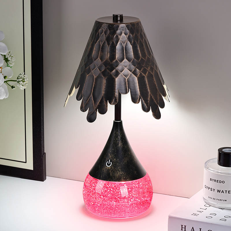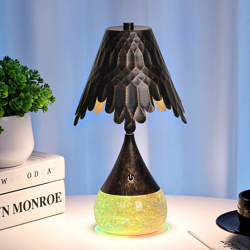โคมไฟตั้งโต๊ะไฟ LED ที่อบอุ่นพร้อมขวด RGB Glitter เป็นคุณสมบัติที่โดดเด่นซึ่งมีขวดโปร่งใสที่เต็มไปด้วยของเหลวที่ไม่เป็นพิษเป็นมิตรกับสิ่งแวดล้อมและชิ้นส่วนขนาดเล็กที่สะท้อนแสง เมื่อเปิดใช้งานฐานจะส่องสว่างในสเปกตรัมของสี RGB ที่สามารถตั้งค่าให้หมุนเวียนผ่านรูปแบบต่าง ๆ หรือล็อคเป็นสีเดียว ของเหลวและลูกปาภายในสร้างเอฟเฟกต์ภาพที่เปลี่ยนแปลงตลอดเวลาขณะที่พวกเขาเคลื่อนไหวในรูปแบบที่คาดเดาไม่ได้เนื่องจากกลไกภายในหรือการสั่นสะเทือนที่ละเอียดอ่อนจากสภาพแวดล้อมโดยรอบ การออกแบบที่ไม่เหมือนใครนี้ไม่เพียง แต่เพิ่มความน่าสนใจให้กับโต๊ะทำงานใด ๆ แต่ยังทำหน้าที่เป็นผู้เริ่มต้นการสนทนาและการตั้งค่าอารมณ์