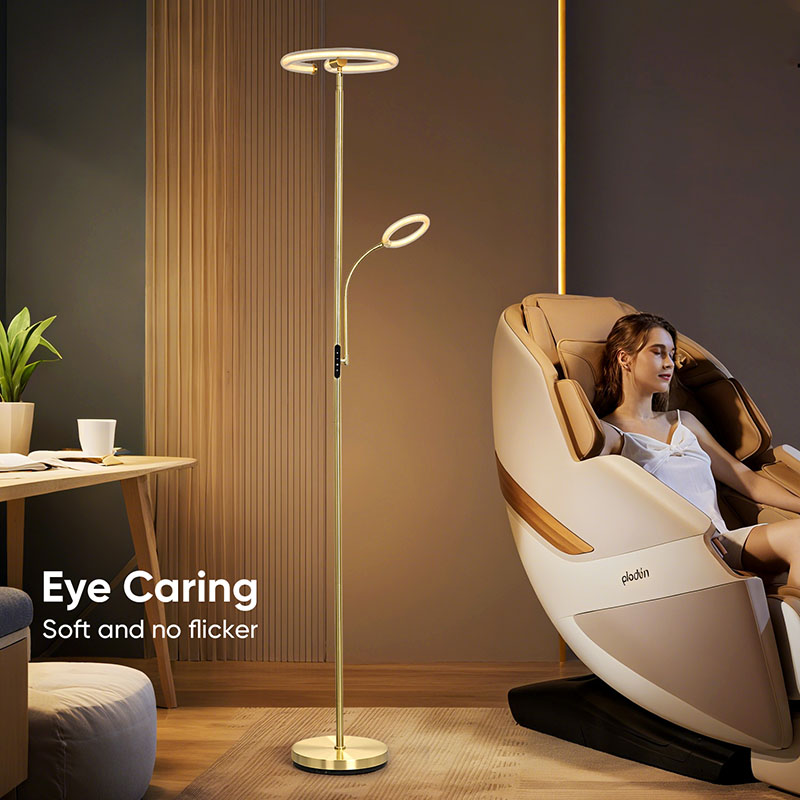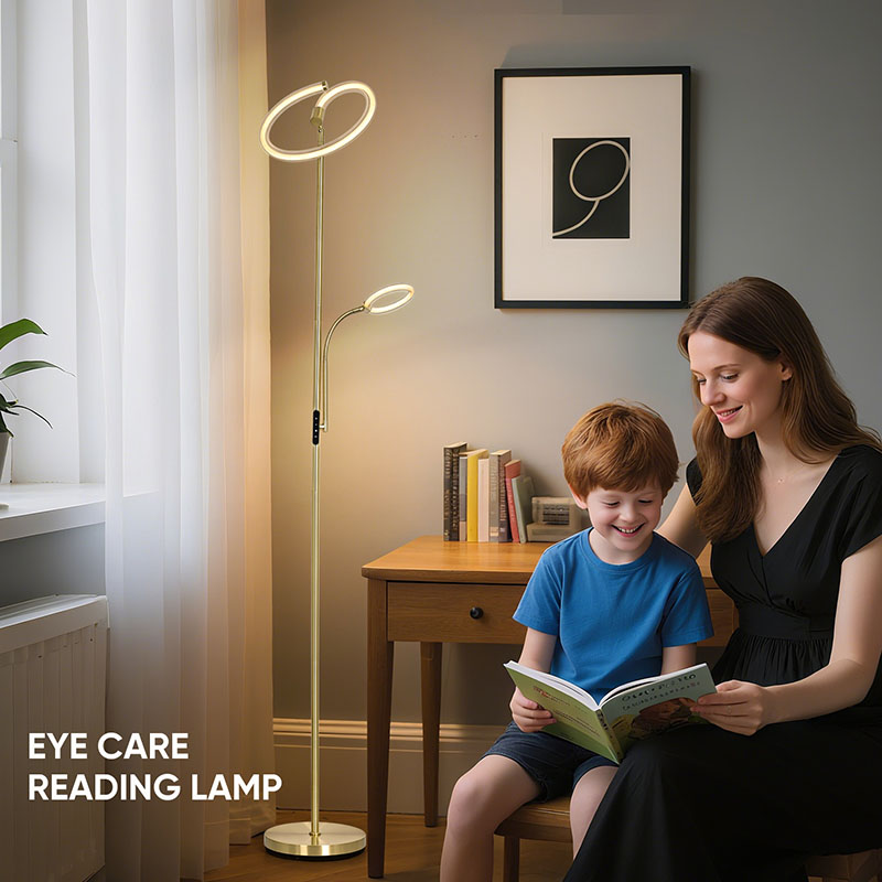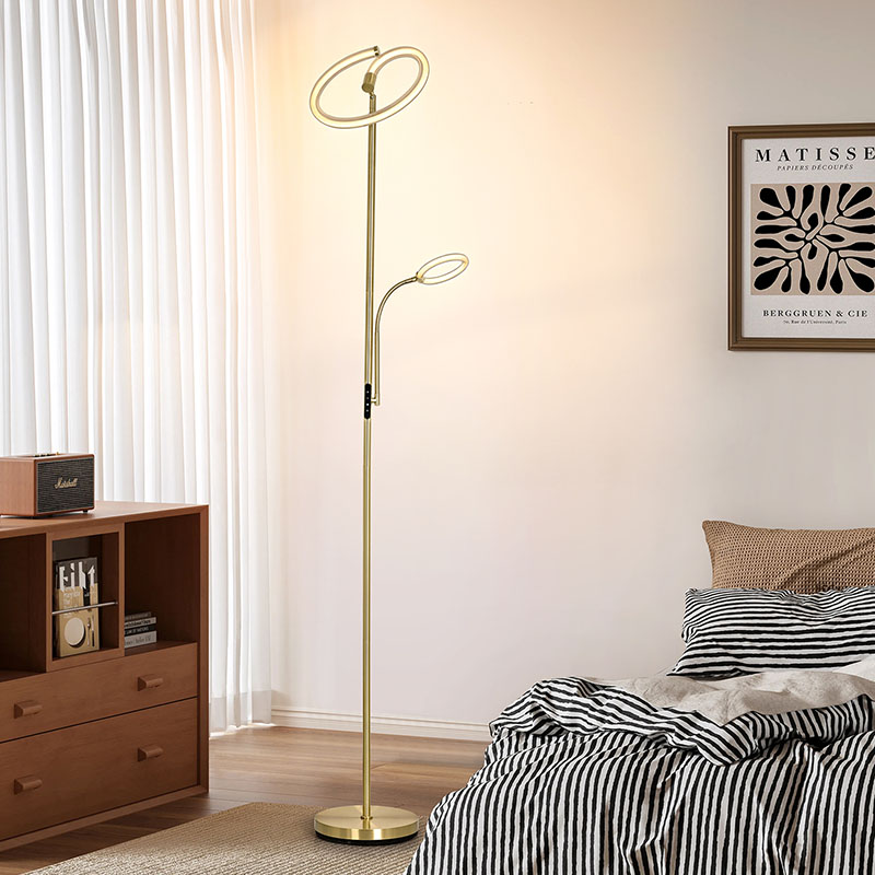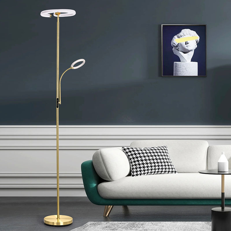 การศึกษา โคมไฟตั้งพื้น LED สีทองหรูหราสำหรับห้องนั่งเล่นสามารถผสมผสานกับสภาพแวดล้อมโดยรอบได้อย่างลงตัว เพิ่มรสชาติและสไตล์ของพื้นที่ทั้งหมด