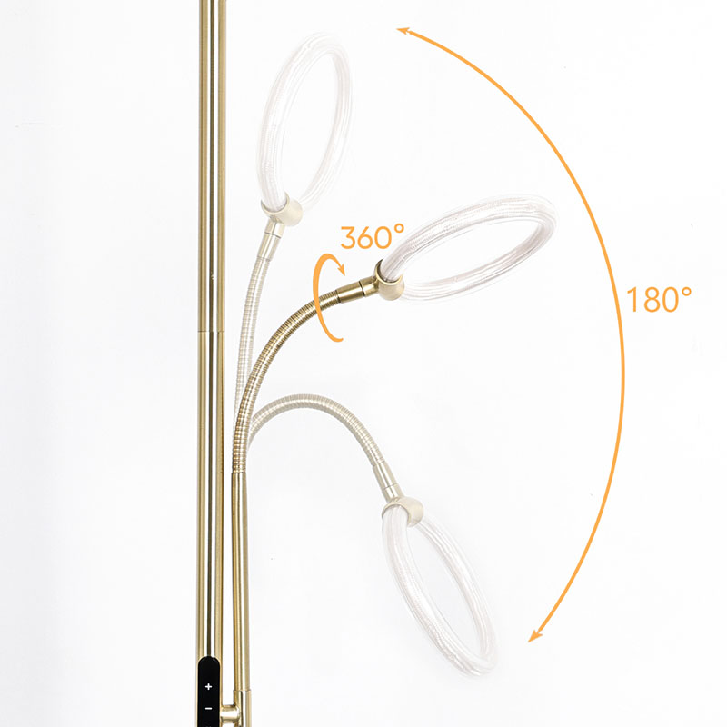 โคมไฟตั้งพื้น LED สีทองสุดหรูสำหรับห้องนั่งเล่นมาพร้อมกับเทคโนโลยีการให้แสงแบบ 360 องศาของหลอดซิลิโคนขั้นสูง ซึ่งปล่อยแสงที่นุ่มนวลและสม่ำเสมอ ส่องสว่างทั่วทั้งพื้นที่ได้อย่างมีประสิทธิภาพ ท่อซิลิโคนมีความยืดหยุ่นและความทนทานดีและสามารถทนต่อสภาพแวดล้อมต่างๆเพื่อให้มั่นใจถึงความมั่นคงและปลอดภัย