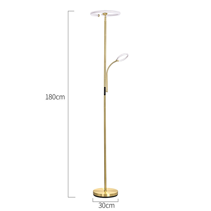 โคมไฟตั้งพื้น LED สีทองสุดหรูสำหรับห้องนั่งเล่นทำจากวัสดุโลหะสีทองคุณภาพสูง พร้อมด้วยการออกแบบโดยรวมที่เรียบง่ายแต่หรูหรา วัสดุโลหะได้รับการขัดเงาและดูแลรักษาอย่างประณีต โดยมีพื้นผิวที่เรียบและละเอียดอ่อนและความแวววาวที่นุ่มนวล เผยให้เห็นบรรยากาศที่หรูหราและสง่างาม ไม่ว่าจะวางไว้ในห้องนั่งเล่น ห้องนอน หรือ