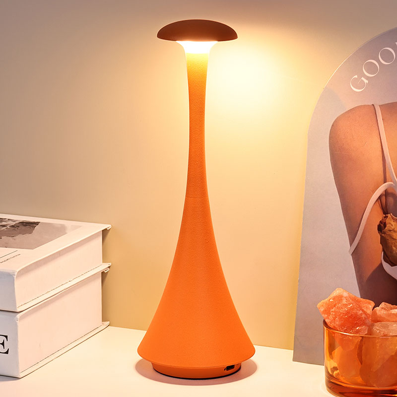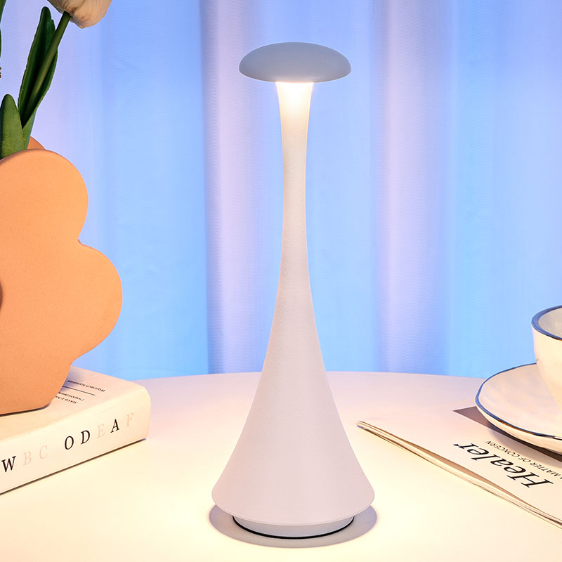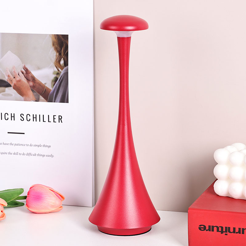 แตะสวิตช์ลดแสงโคมไฟตั้งโต๊ะ LED ดีไซน์ใหม่พร้อมแบตเตอรี่แบบรีชาร์จได้ ด้วยเส้นที่เรียบง่ายและเรียบเนียนและรูปทรงตามหลักสรีรศาสตร์ การออกแบบรูปทรงเห็ดและหางเข็ม และโคมไฟตั้งโต๊ะ LED แสงอบอุ่นโลหะ ไม่เพียงแต่เป็นเครื่องมือให้แสงสว่างที่ใช้งานได้จริงเท่านั้น