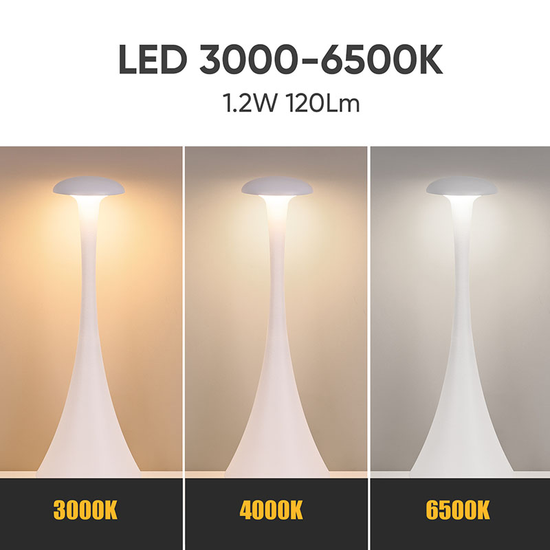 โคมไฟตั้งโต๊ะ LED ดีไซน์ใหม่พร้อมแบตเตอรี่แบบชาร์จไฟได้ LED 3000K -6500K 1.2W ข้อมูล 120lm