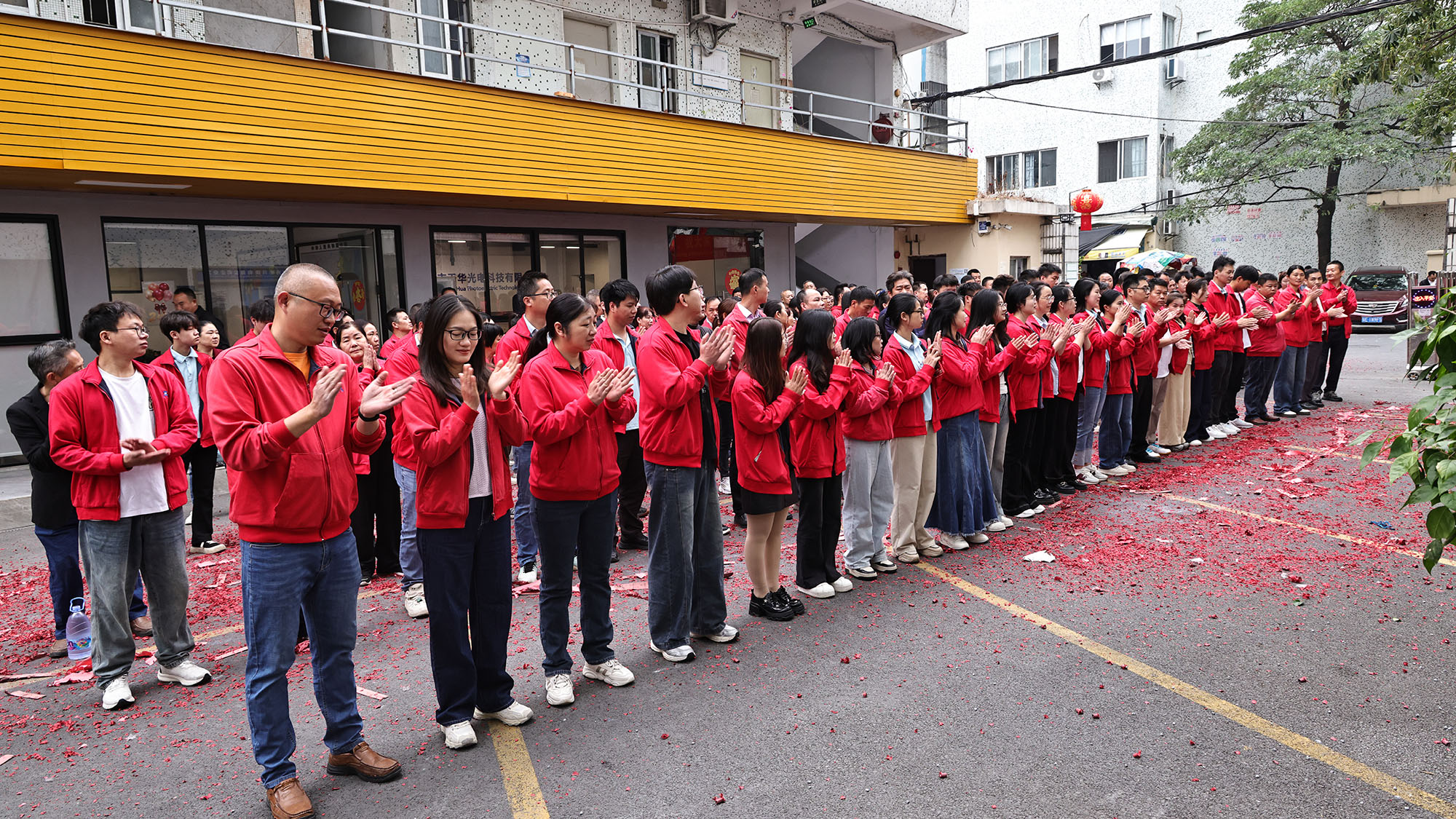 ในช่วงเวลาอันเป็นมงคลในตอนเช้าพร้อมกับเสียงประทัดที่ดังก้องกังวาน พิธีเปิดอย่างเป็นทางการก็ได้เริ่มต้นขึ้น เสียงประทัดดังกึกก้องไม่เพียงแต่ช่วยขจัดความหนาวเย็นในฤดูหนาวที่ยังเหลืออยู่ แต่ยังเป็นสัญลักษณ์ว่าบริษัทจะเฟื่องฟูและเจริญรุ่งเรืองในปีใหม่อีกด้วย เศษกระดาษสีแดงที่เต้นอยู่บนท้องฟ้าเปรียบเสมือนดอกไม้แห่งลางดี ซึ่งปูทางไปสู่อนาคตที่สดใส ซึ่งหมายความว่า Tianhua Optoelectronics จะบรรลุผลสำเร็จที่ทะยานและเติบโตในปี 2569 อย่างแน่นอน
