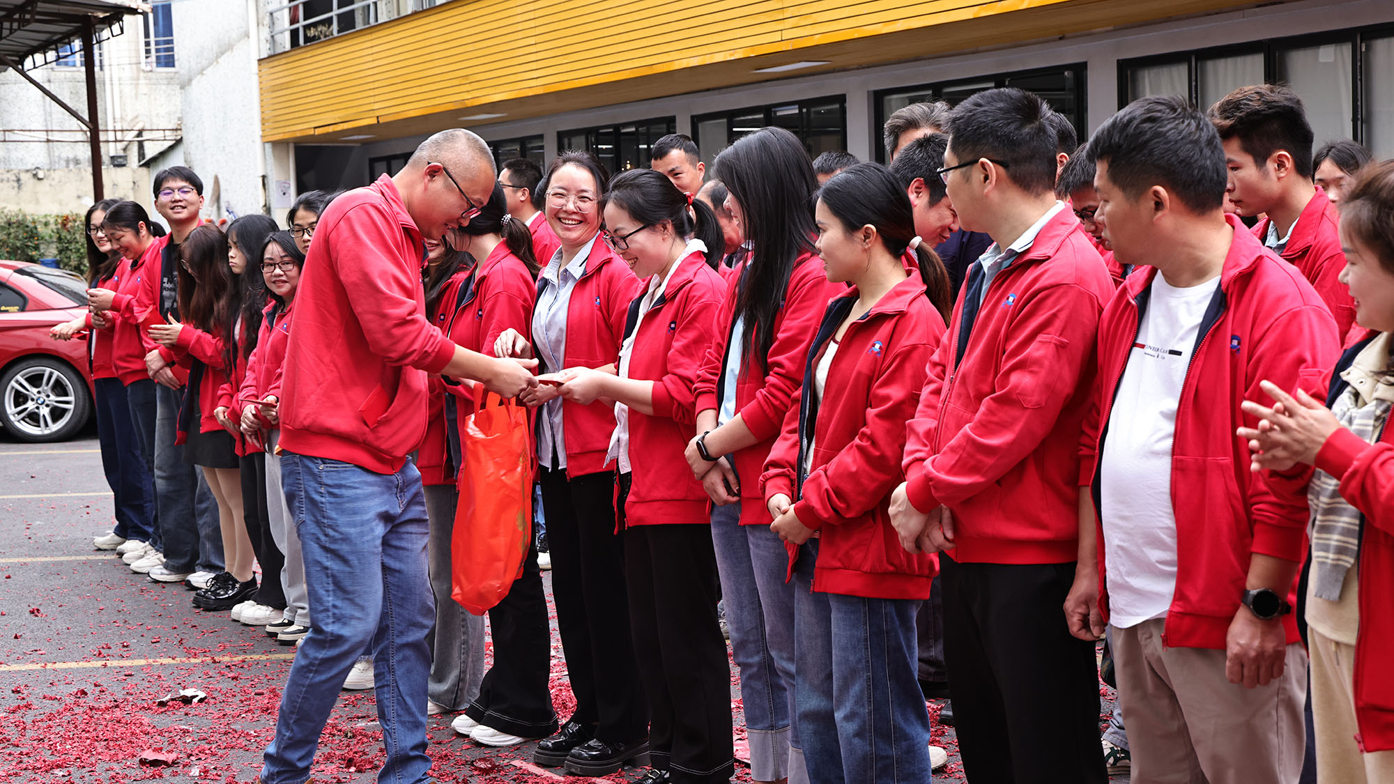 ต่อจากนั้น ช่วงที่น่าตื่นเต้นของการแจก "ซองแดงคิกออฟ" ได้ผลักดันบรรยากาศในสถานที่จัดงานให้ถึงจุดไคลแม็กซ์ ฝ่ายบริหารของบริษัทได้แจกอั่งเปามงคล (หลี่ซือ) ให้กับพนักงานทุกคนเป็นการส่วนตัว อั่งเปาหนักๆ เหล่านี้ไม่เพียงแต่มอบความเอาใจใส่และคำอวยพรของบริษัทให้กับพนักงานเท่านั้น แต่ยังรวมถึงความหวังที่สวยงามสำหรับการทำงานที่ราบรื่นและชีวิตที่มีความสุขของทุกคนในปีใหม่อีกด้วย พนักงานรับอั่งเปายิ้มแย้มแจ่มใส ทักทาย "การเริ่มต้นที่รุ่งโรจน์" เสียงหัวเราะและความสุขเต็มไปทั่วอากาศ ผสมผสานรสชาติอันเข้มข้นของปีใหม่เข้ากับความอบอุ่นของมนุษย์ ทำให้หัวใจของทุกคนอบอุ่น