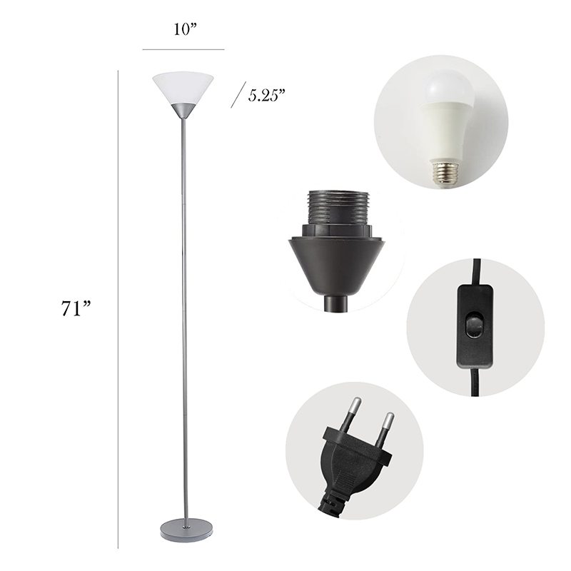ขนาดของโคมไฟตั้งพื้น LED มีฝาปิด ฝาปิด สวิตซ์ หลอดไฟ