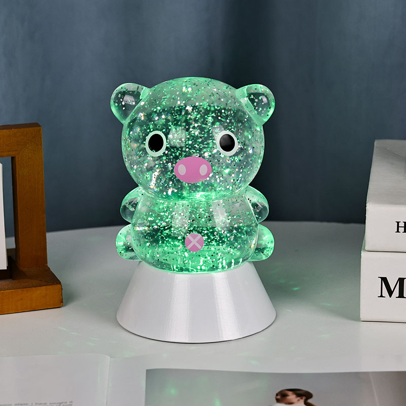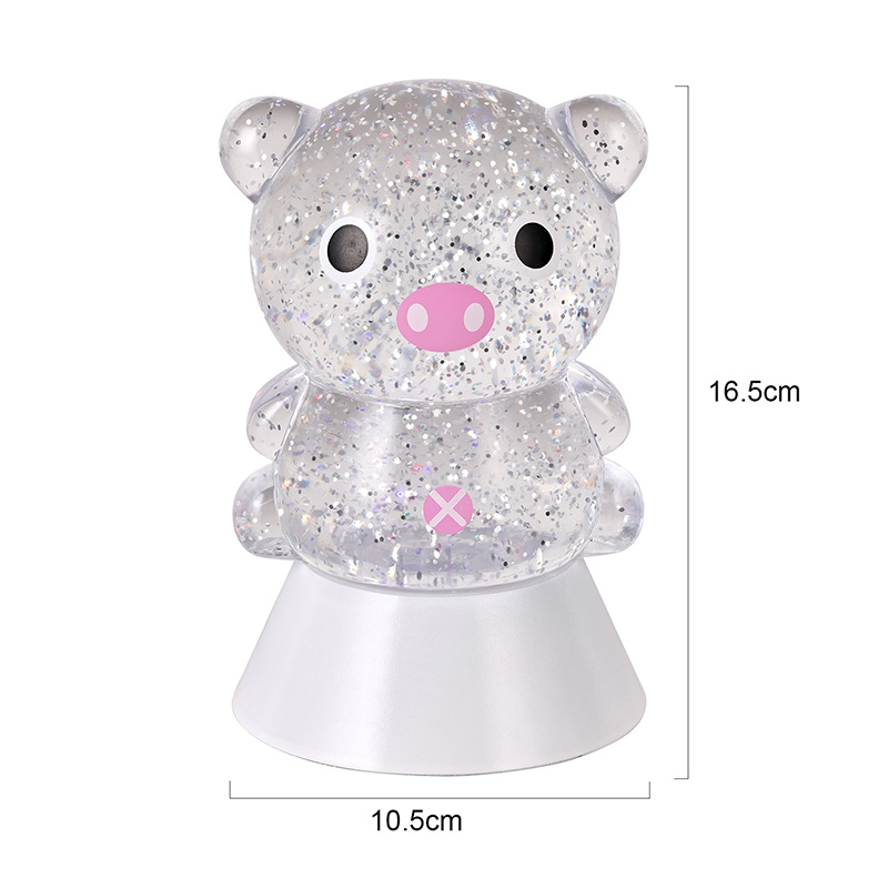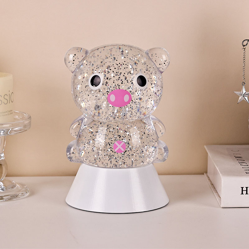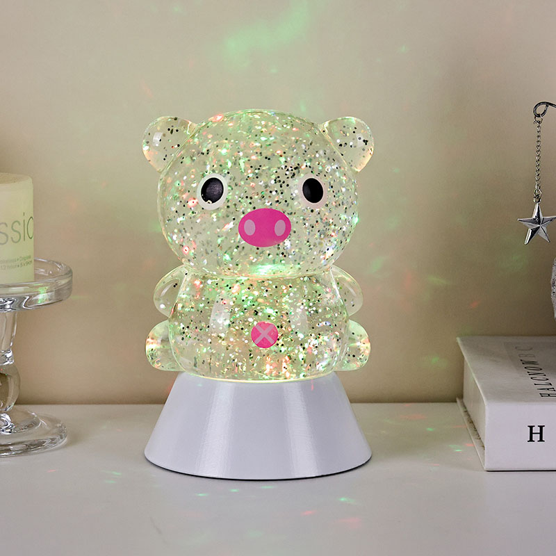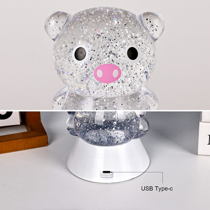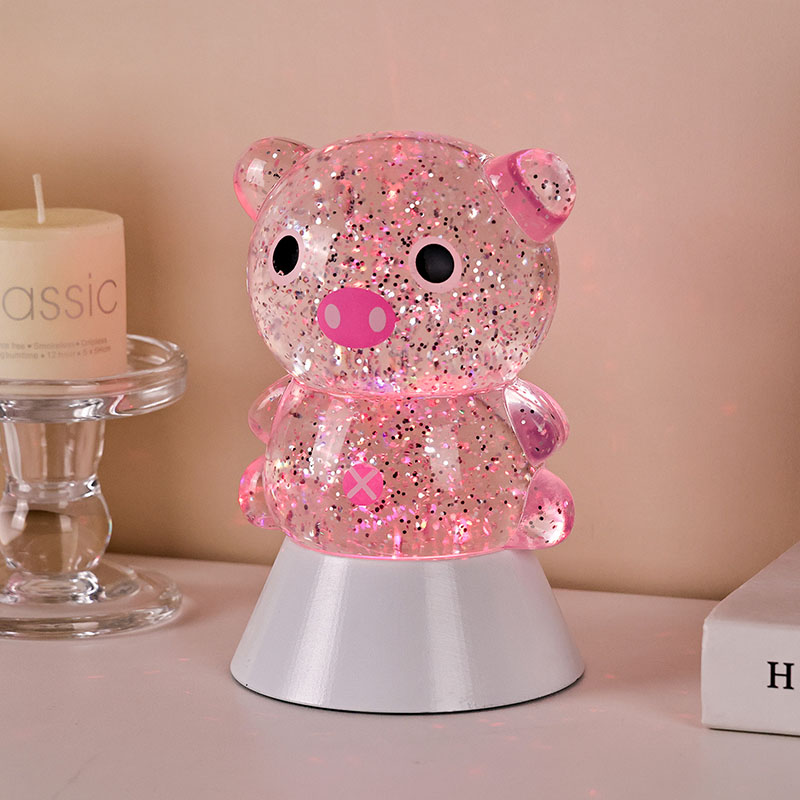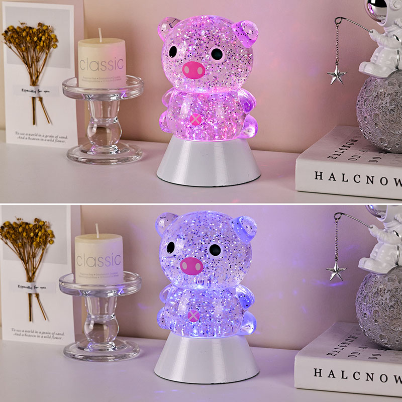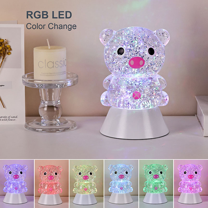 โคมไฟตั้งโต๊ะแวววาว RGB เฉดสีหมูไม่ได้เป็นเพียงอุปกรณ์ให้แสงสว่าง แต่ยังเป็นของตกแต่งที่ได้รับการออกแบบอย่างมีศิลปะอีกด้วย ไม่ว่าจะใช้เป็นไฟช่วยปลอบประโลมเด็กๆ ก่อนนอนหรือใช้เป็นไฟประดับห้องอย่างมีสไตล์ ก็มอบประสบการณ์การรับชมภาพที่น่ารื่นรมย์ แสงที่อ่อนโยนและไม่ทำให้ตาบอดช่วยบรรเทาความเมื่อยล้าทางการมองเห็น ช่วยให้เด็กๆ ผ่อนคลายและหลับไปอย่างสงบสุข ในขณะเดียวกัน แสงที่ส่องประกายระยิบระยับสามารถจุดประกายจินตนาการของเด็กๆ และกลายเป็นเพื่อนร่วมทางในการสำรวจแสงและสีสัน