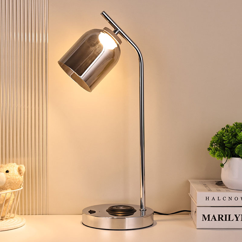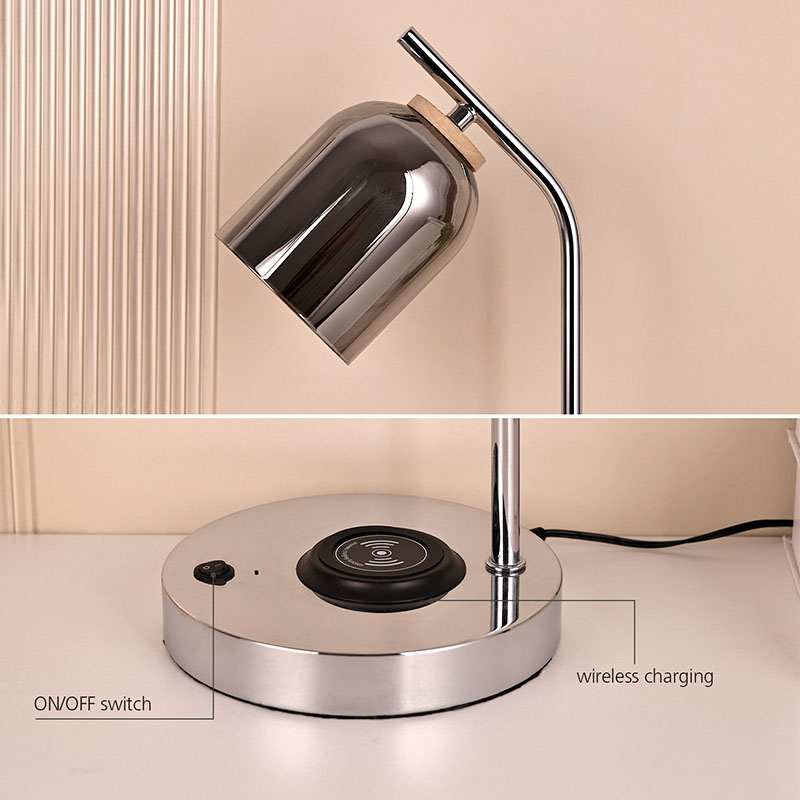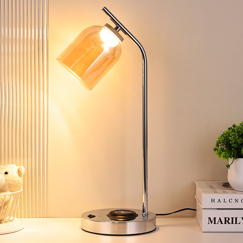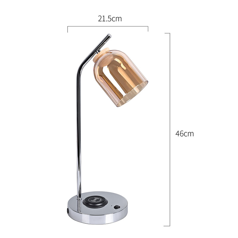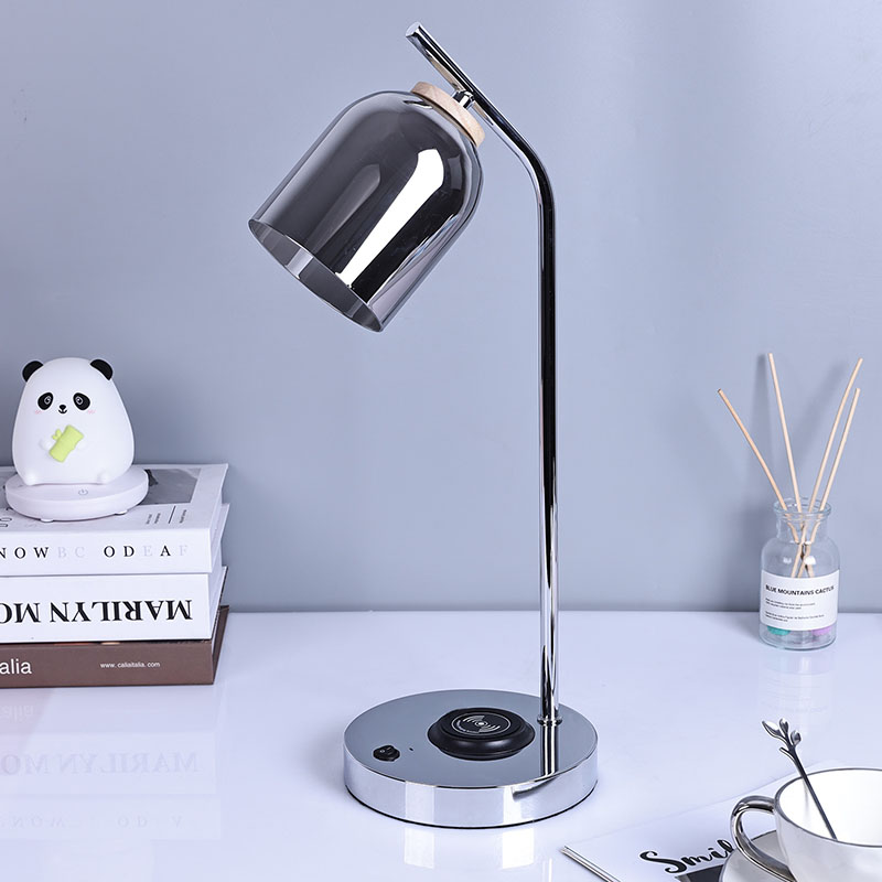 โคมไฟตั้งโต๊ะ LED QI พร้อมโป๊ะแก้วพร้อมฐานและตัวเครื่องเป็นเศษโลหะ