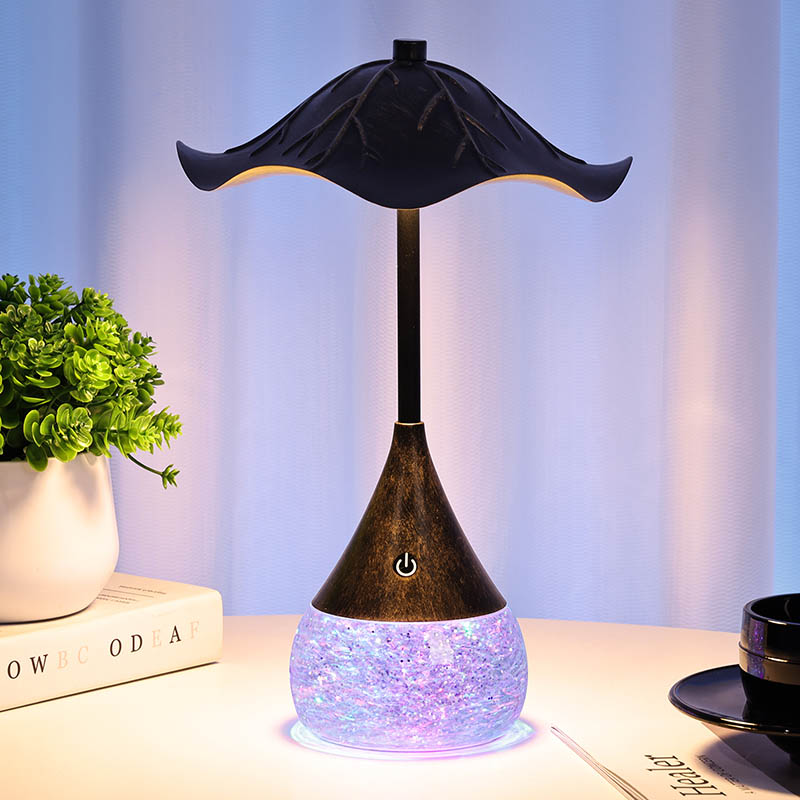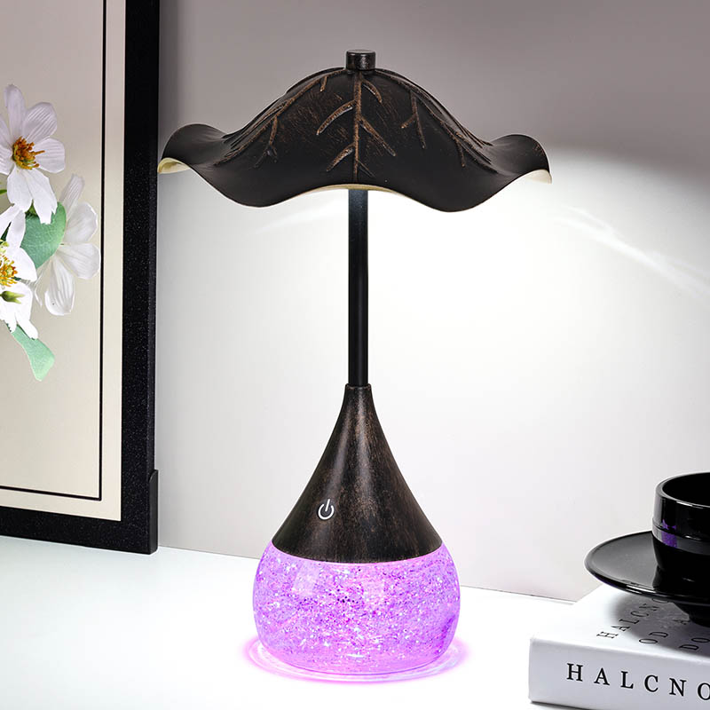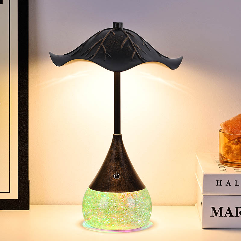 โคมไฟตั้งโต๊ะ LED Retor ด้วยฐานแวว rgb อนุภาคที่มีสีสันเหล่านี้หมุนวนและเต้นรำราวกับว่ามีชีวิตอยู่ตอบสนองต่อการเปลี่ยนแปลงของการตั้งค่าแสงและสร้างจอแสดงผลภาพที่ชวนให้หลงใหล เทคโนโลยี RGB (สีแดง, สีเขียว, สีน้ำเงิน) ช่วยให้มีสีสันที่หลากหลายช่วยให้คุณสามารถเลือกสีสันที่เติมเต็มการตกแต่งภายในหรือสไตล์ส่วนตัวของคุณได้อย่างสมบูรณ์แบบ