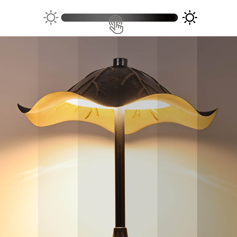 จุดศูนย์กลางของโคมไฟนี้เป็นด้านบนเหมือนร่มที่โดดเด่นชวนให้นึกถึงฝาเห็ดที่ละเอียดอ่อนประดับด้วยลวดลายใบทองที่สลับซับซ้อน การออกแบบนี้ไม่เพียง แต่ช่วยเพิ่มความงามที่ได้รับแรงบันดาลใจจากธรรมชาติให้กับสภาพแวดล้อมของคุณ แต่ยังทำหน้าที่เป็นฝาครอบการแพร่กระจายที่ใช้งานได้สำหรับแหล่งกำเนิดแสงสร้างความนุ่มนวลและเปล่งประกายที่น่าพอใจต่อดวงตา