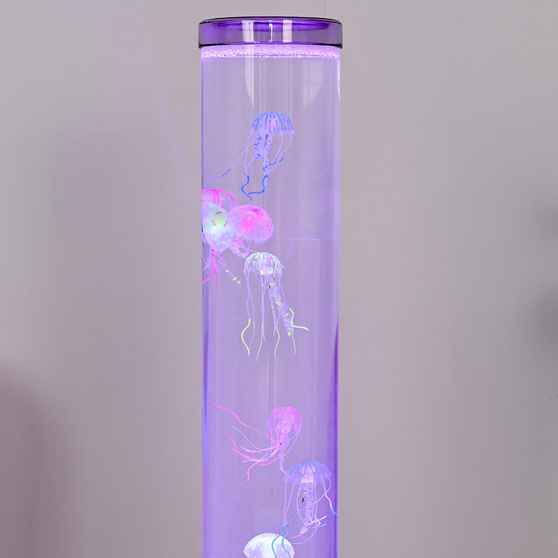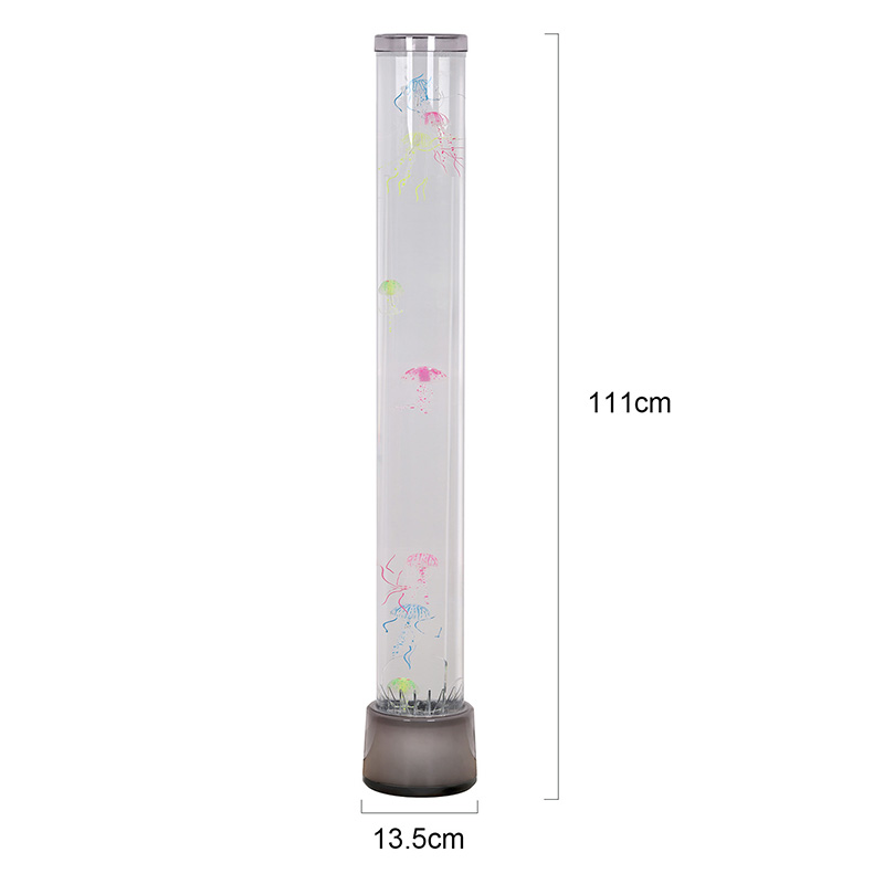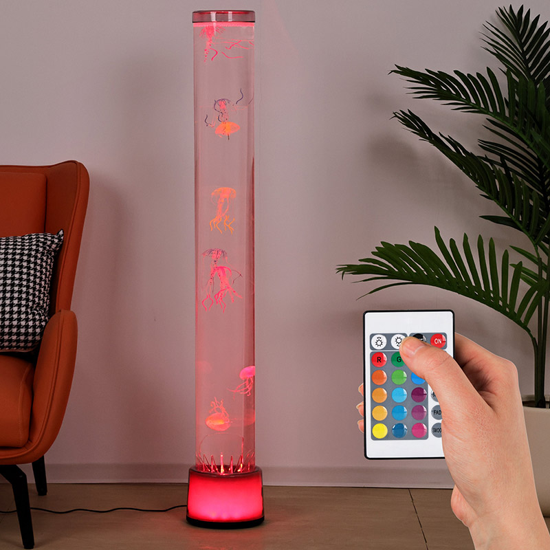 39.5*39.5*113ซมโคมไฟแมงกะพรุนตั้งพื้น RGB เป็นชิ้นงานตกแต่งบ้านสุดสร้างสรรค์ที่ผสมผสานเทคโนโลยีสมัยใหม่เข้ากับสุนทรียศาสตร์ตามธรรมชาติ ด้วยเอฟเฟกต์แสงและเงาชวนฝันและการออกแบบแมงกะพรุนที่เหมือนจริง มันเพิ่มบรรยากาศมหาสมุทรอันลึกลับและเงียบสงบให้กับพื้นที่ภายใน การออกแบบทั้งหมดสร้างขึ้นจากอะคริลิกที่มีความโปร่งใสสูง โดยมีรูปทรงเพรียวบางและสง่างามที่มีลักษณะคล้ายกับโลกใต้ทะเลขนาดจิ๋ว ทำให้คุณดื่มด่ำราวกับว่าคุณอยู่ลึกลงไปใต้ทะเล