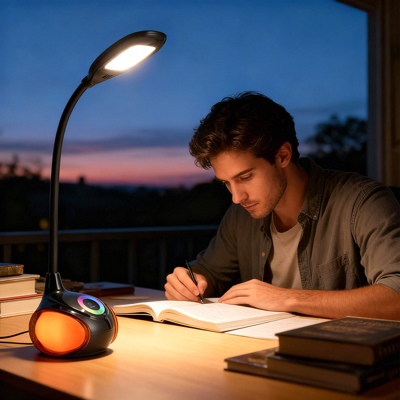 นอกจากนี้โคมไฟตั้งโต๊ะยังสามารถส่องสว่างโคมไฟตั้งโต๊ะได้ 360 องศาโดยไม่มีมุมตาย