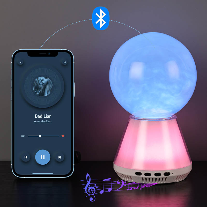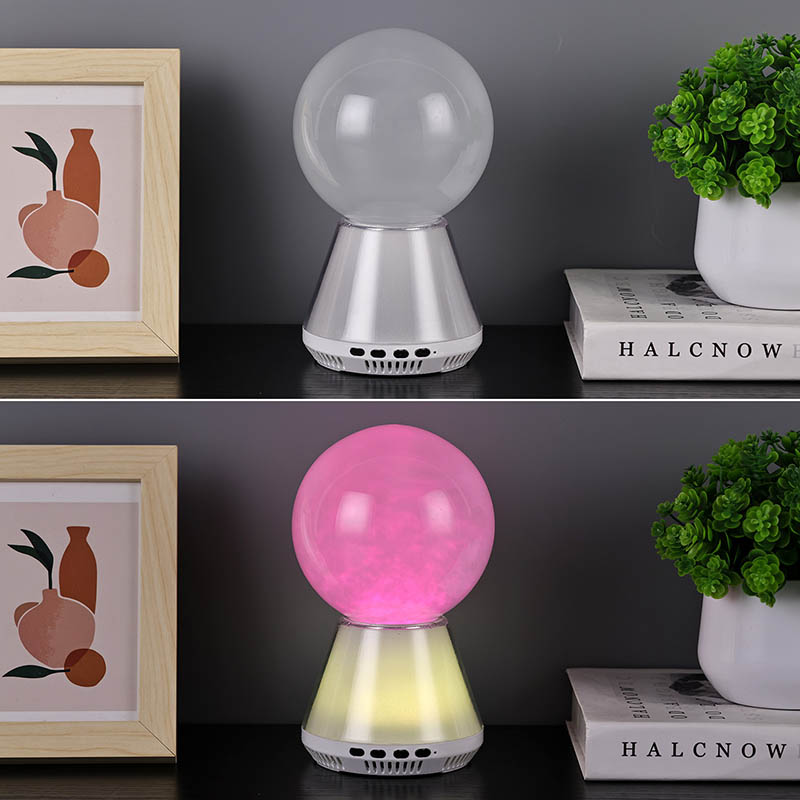 โคมไฟแวววาว RGB LED พร้อมการควบคุมบลูทูธที่รวมการไหลของของเหลวในลูกบอลแก้วเข้ากับสถานะคล้ายเมฆ การเปลี่ยนสีที่ซิงโครไนซ์ระหว่างฐานกับของเหลว และการเชื่อมต่อ Bluetooth เพื่อเล่นเพลง ได้รับการออกแบบมาเพื่อสร้างโลกแห่งความฝันสำหรับคุณ โคมไฟระยิบระยับ LED RGB พร้อมการควบคุมบลูทูธไม่ได้เป็นเพียงไฟกลางคืนที่ใช้งานได้จริง แต่ยังเป็นงานศิลปะที่มีมนต์ขลังอีกด้วย