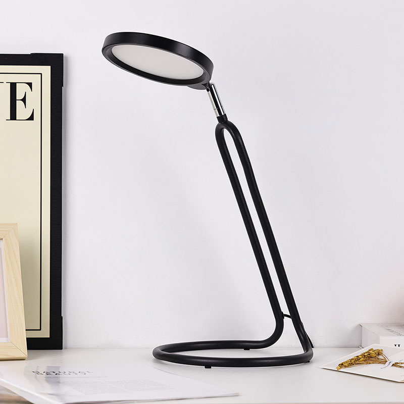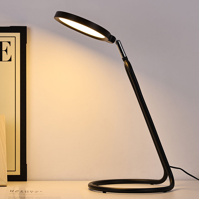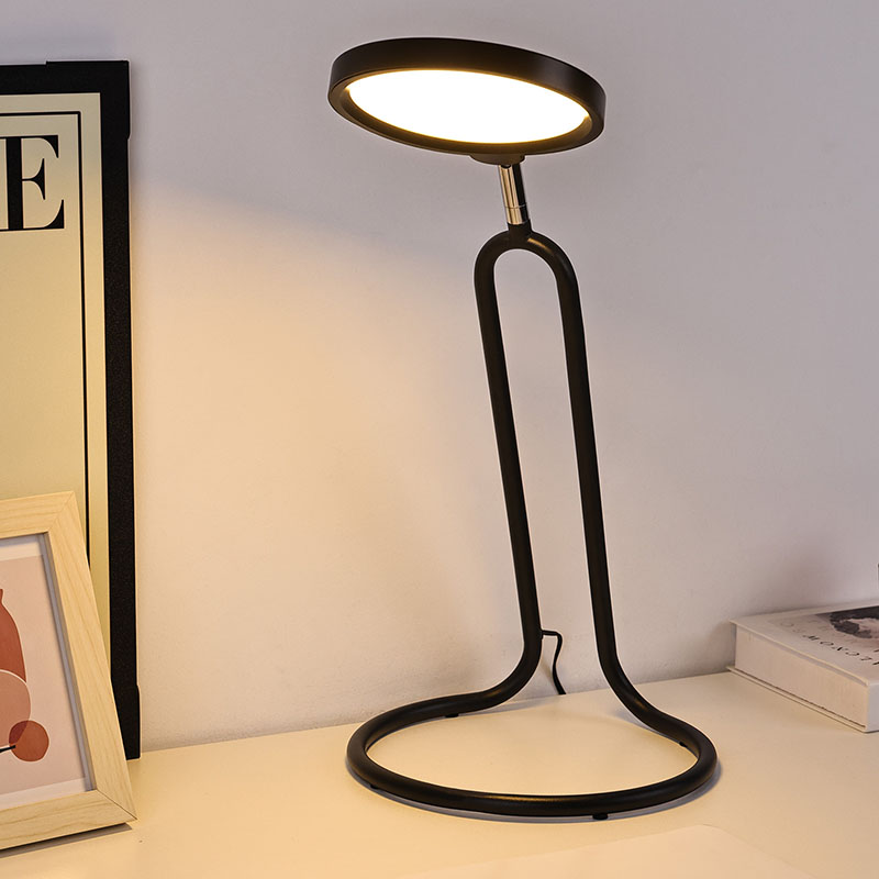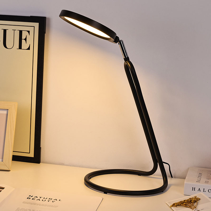 โคมไฟตั้งโต๊ะ LED ความเรียบง่ายมีโทนสีดำและสีขาวที่โดดเด่นพร้อมขาตั้งโลหะโค้งที่รองรับโคมไฟกลมสีขาวหรือสีเหลืองอ่อน การออกแบบนี้ไม่เพียง แต่ดูยอดเยี่ยม แต่ยังให้บริการแสงที่นุ่มนวลและล้อมรอบซึ่งเปลี่ยนห้องของคุณให้เป็นสวรรค์ที่สะดวกสบาย