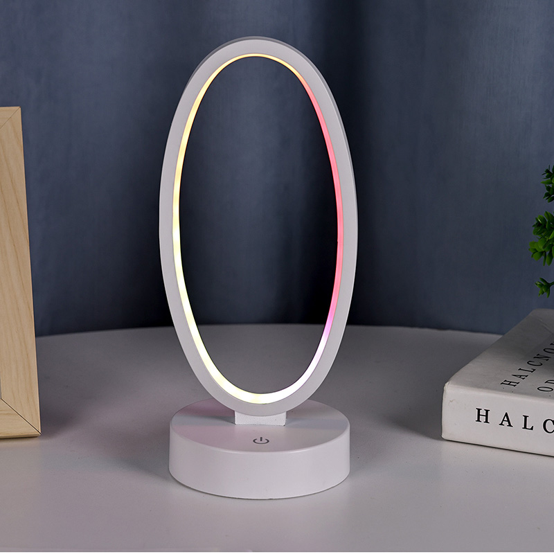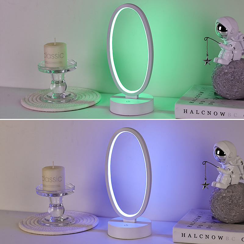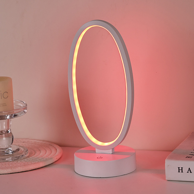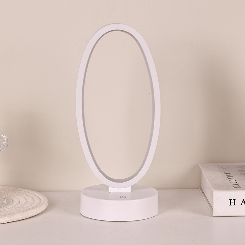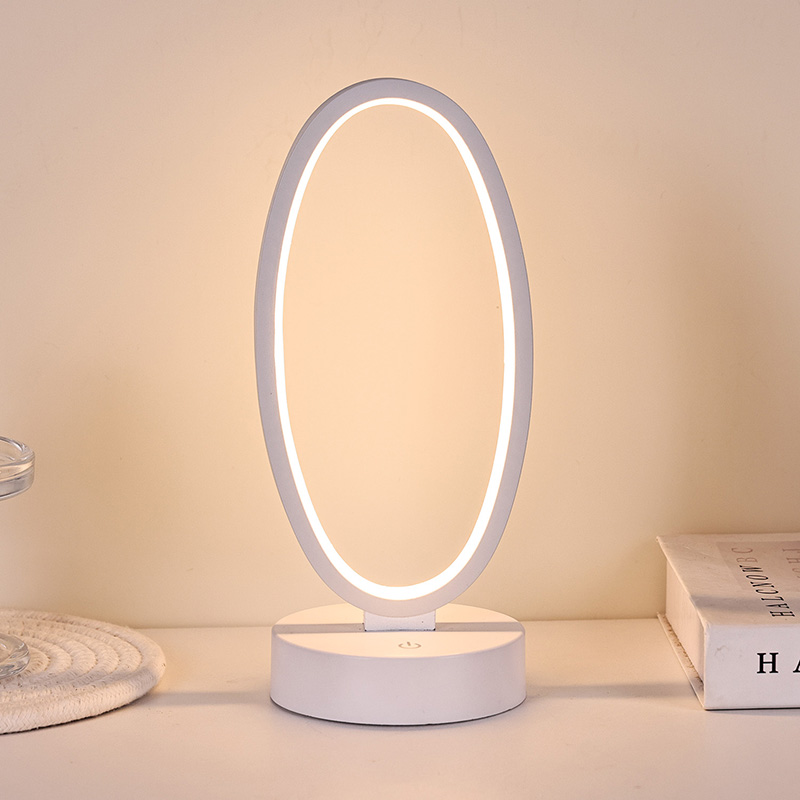 โคมไฟตั้งโต๊ะขนาดกะทัดรัดแต่ทรงพลังมีดีไซน์ทรงวงรีเรียบง่ายพร้อมวงแหวนเรืองแสงอันนุ่มนวล